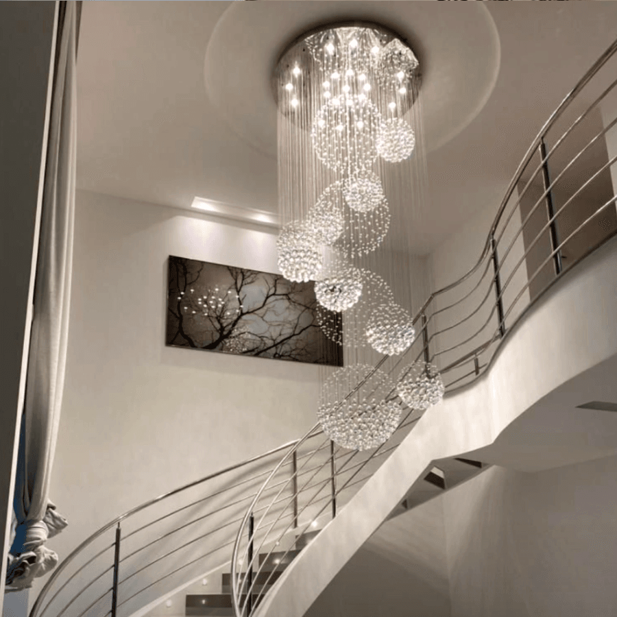 Indicamos o Lustre ASTRA 05 para Sala Pé Direito Duplo, Escadas e Hall de Entrada de Casas Modernas.