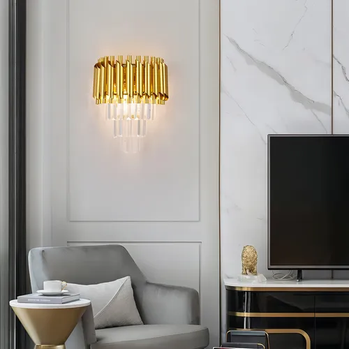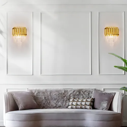 O design contemporâneo da luminária de parede ED Wallinluxe é caracterizado por sua estrutura de vidro finamente esculpida, que reflete a luz de maneira espetacular, projetando padrões luminosos que dão vida às paredes de sua casa. Sua instalação é simples e se adapta a uma variedade de estilos decorativos, do moderno ao clássico, adicionando um toque de luxo e requinte.