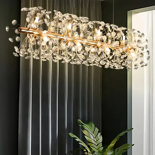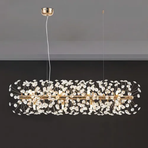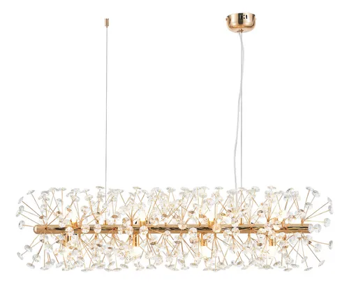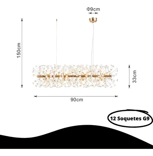 O Peça Grande com Design Moderno em metal dourado e cristal, traz leveza e personalidade ao seu ambiente. Ideal para aplicações em salas, quartos, lojas e etc…