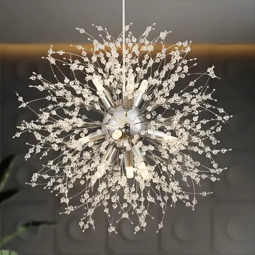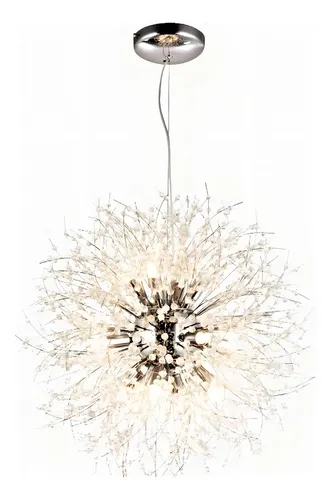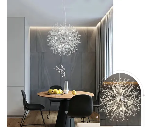 – 1 Lustre Pendente Dente de Leão Prata Para 9 lâmpadas, base G9 (não inclusas)